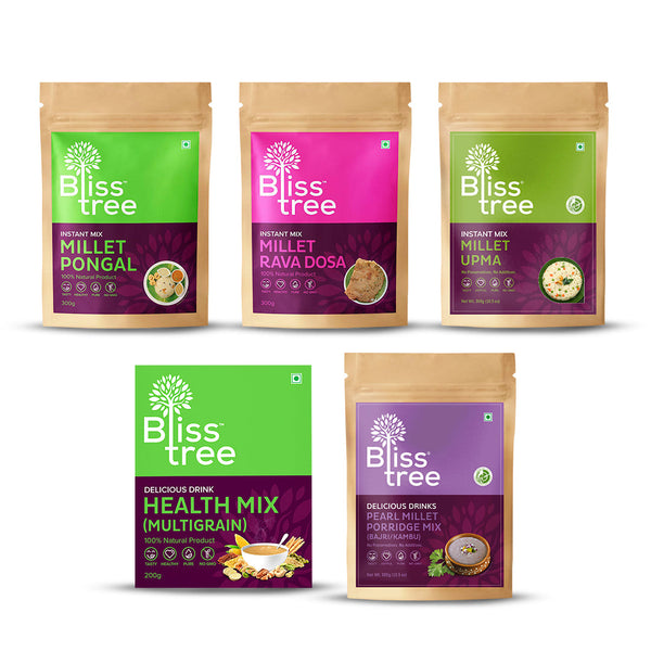Includes - Millet Rava Dosa, Millet Pongal, Millet Upma, Pearl Millet Porridge Mix, Multigrain Millet Drink Mix